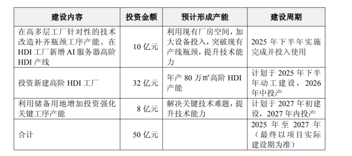 人民财讯8月24日电,景旺电子(603228)8月24日晚间,公司拟投资建设珠海金湾基地扩产项目,预计总投资50亿元。经初步测算,此次扩产投资项目税后投资回收期约为7.5年(含建设期),项目建设周期为2025年至2027年,公司将根据市场需求和业务进展等具体情况分阶段实施。此次扩产主要聚焦AI算力、高速网络通讯、汽车智驾及AI端侧应用等高增长领域。